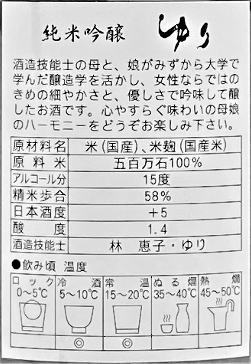 ゆり 純米吟醸酒 720ml 【化粧箱付き】