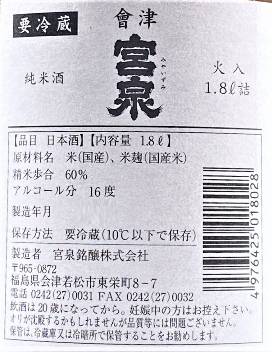 醸 造 所 :宮泉銘醸(福島県会津若松市)