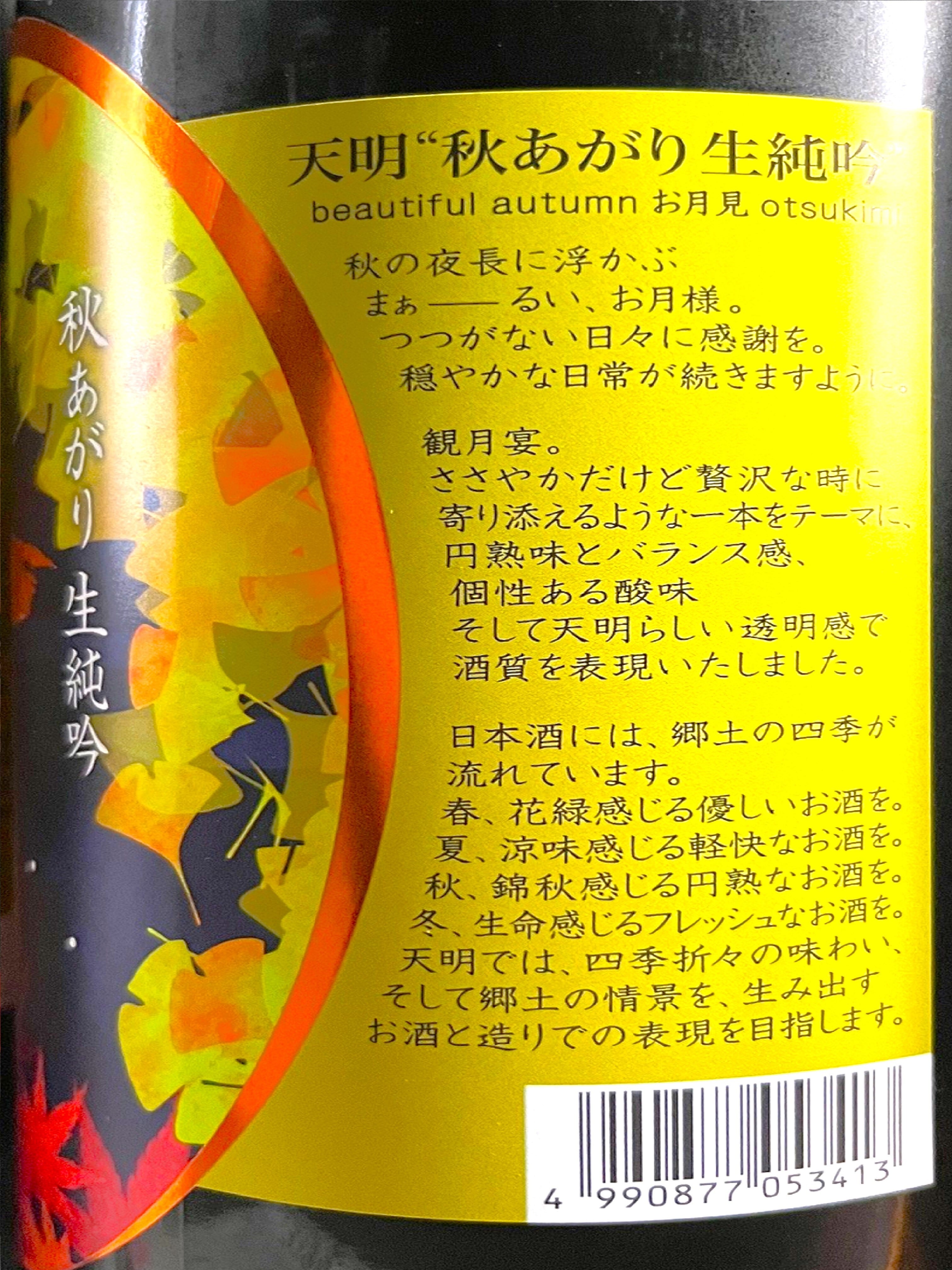 天明 純米吟醸本生酒 秋あがり 1.8L 【クール便推奨】