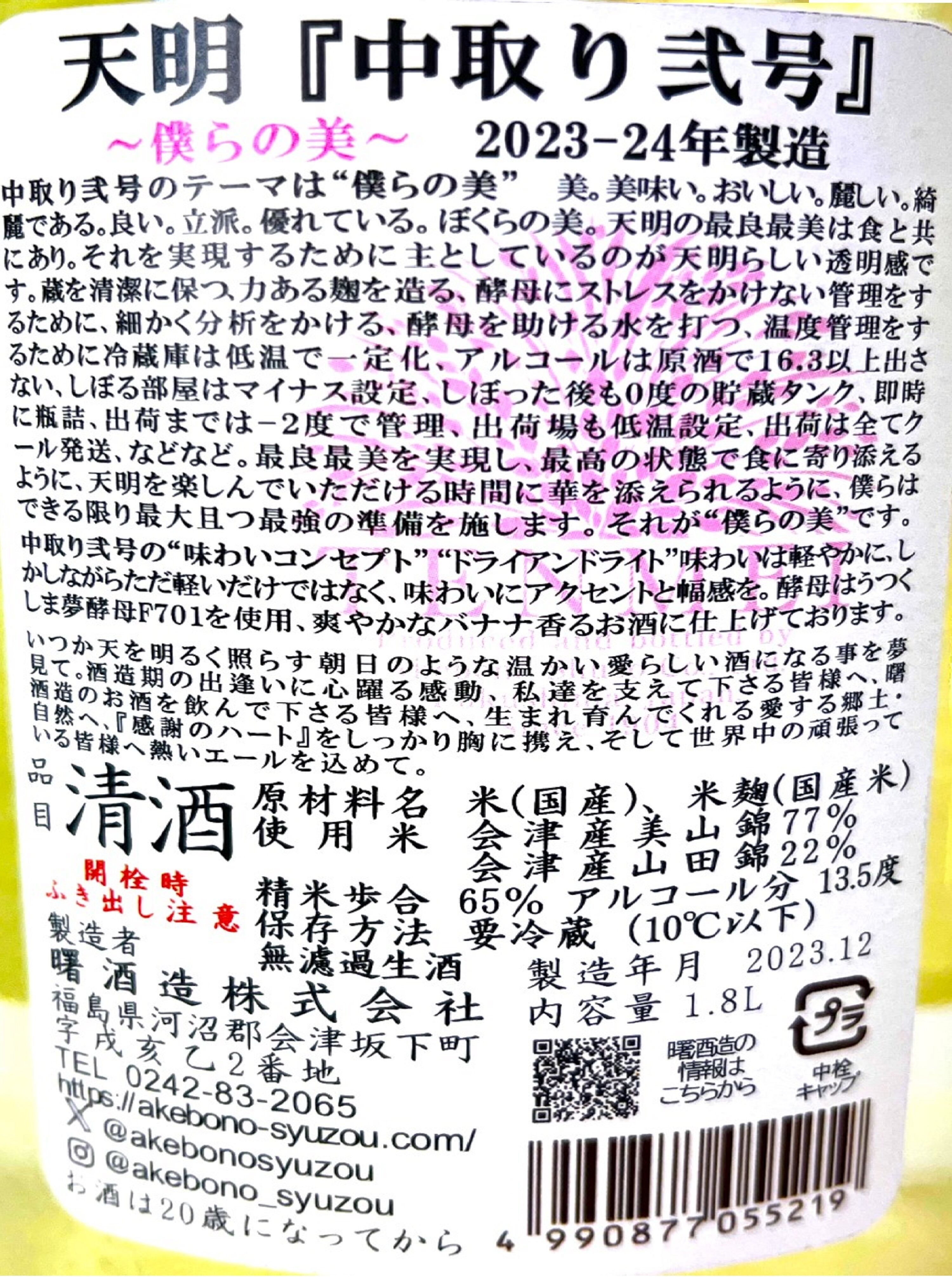 醸 造 所 :曙酒造(福島県会津坂下町)