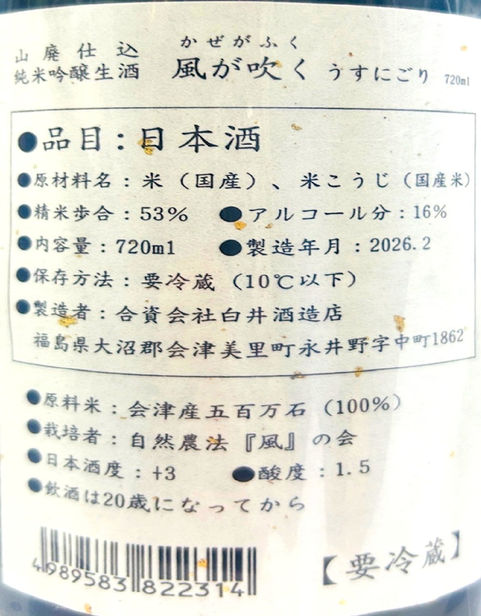 醸 造 所 :白井酒造店(福島県会津美里町)