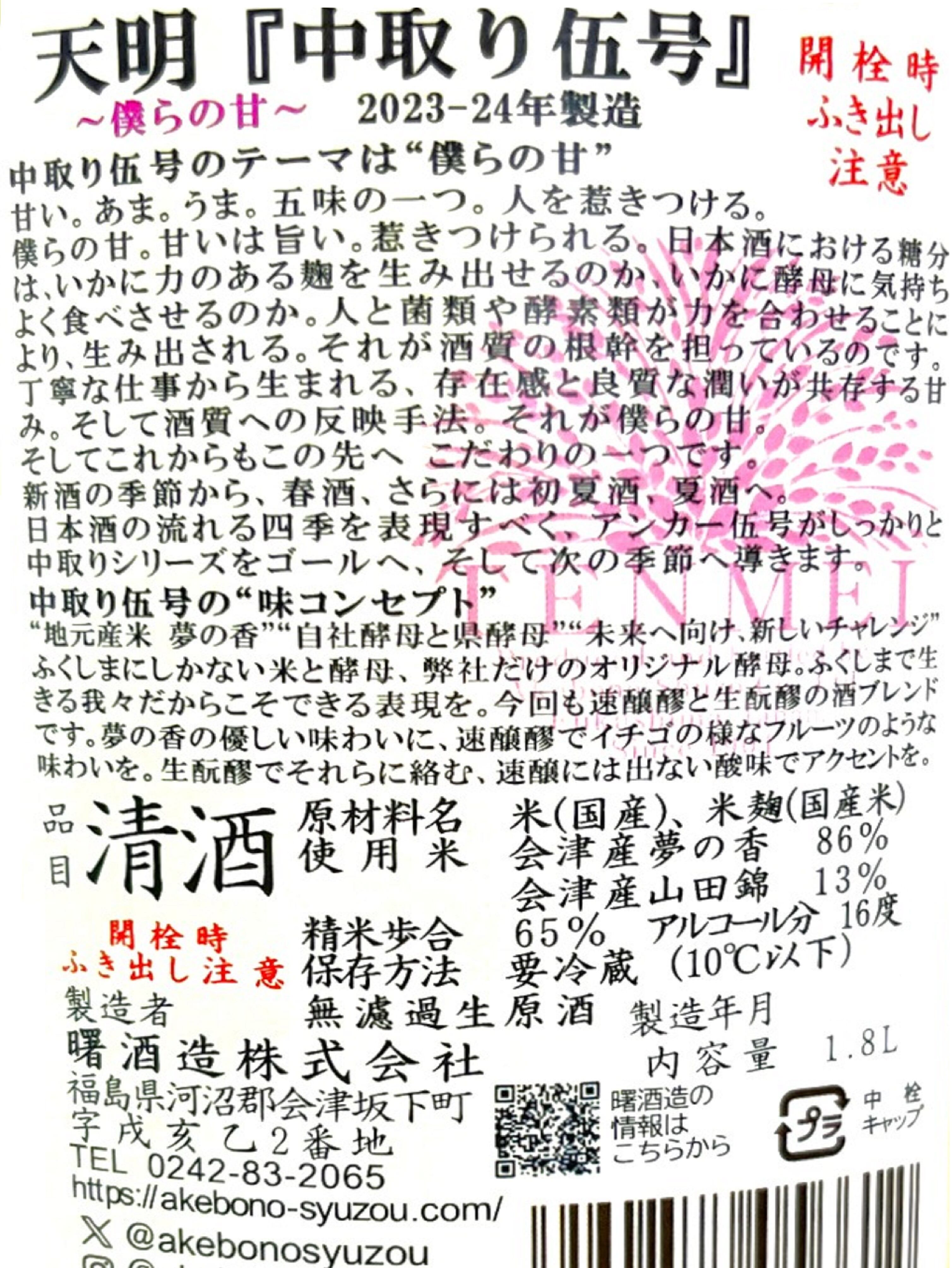 醸 造 所 :曙酒造(福島県会津坂下町)