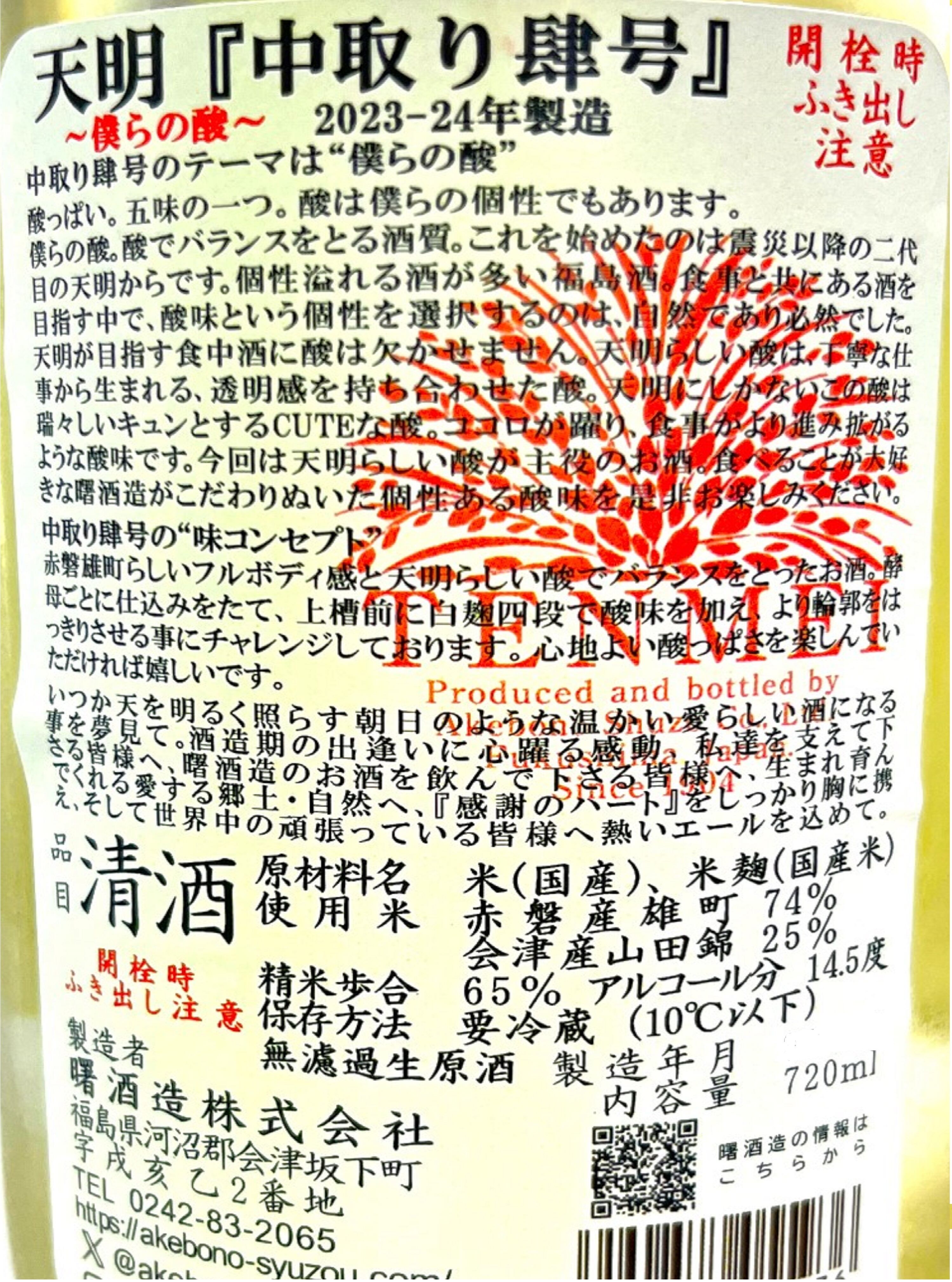 醸 造 所 :曙酒造(福島県会津坂下町)